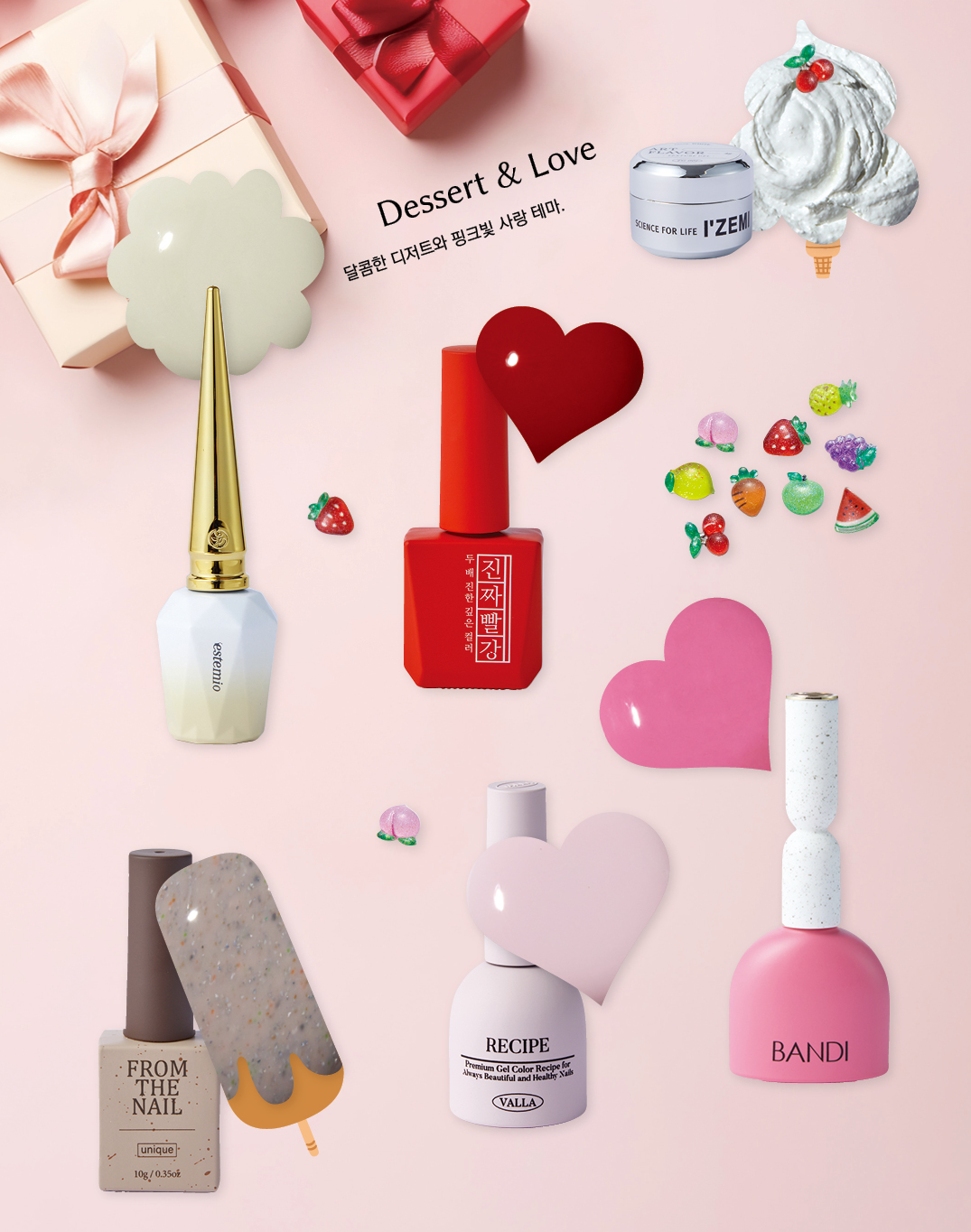 ‘VS 37 코랄 핑크’ 스프링데이 컬렉션 시럽 컬러 젤은 VALLA. | ‘진짜 빨강’ 컬러 젤은 MOSTIVE. | ‘BF107 크림 핑크’ 솔리드 시리즈 컬러 젤은 BANDI. |