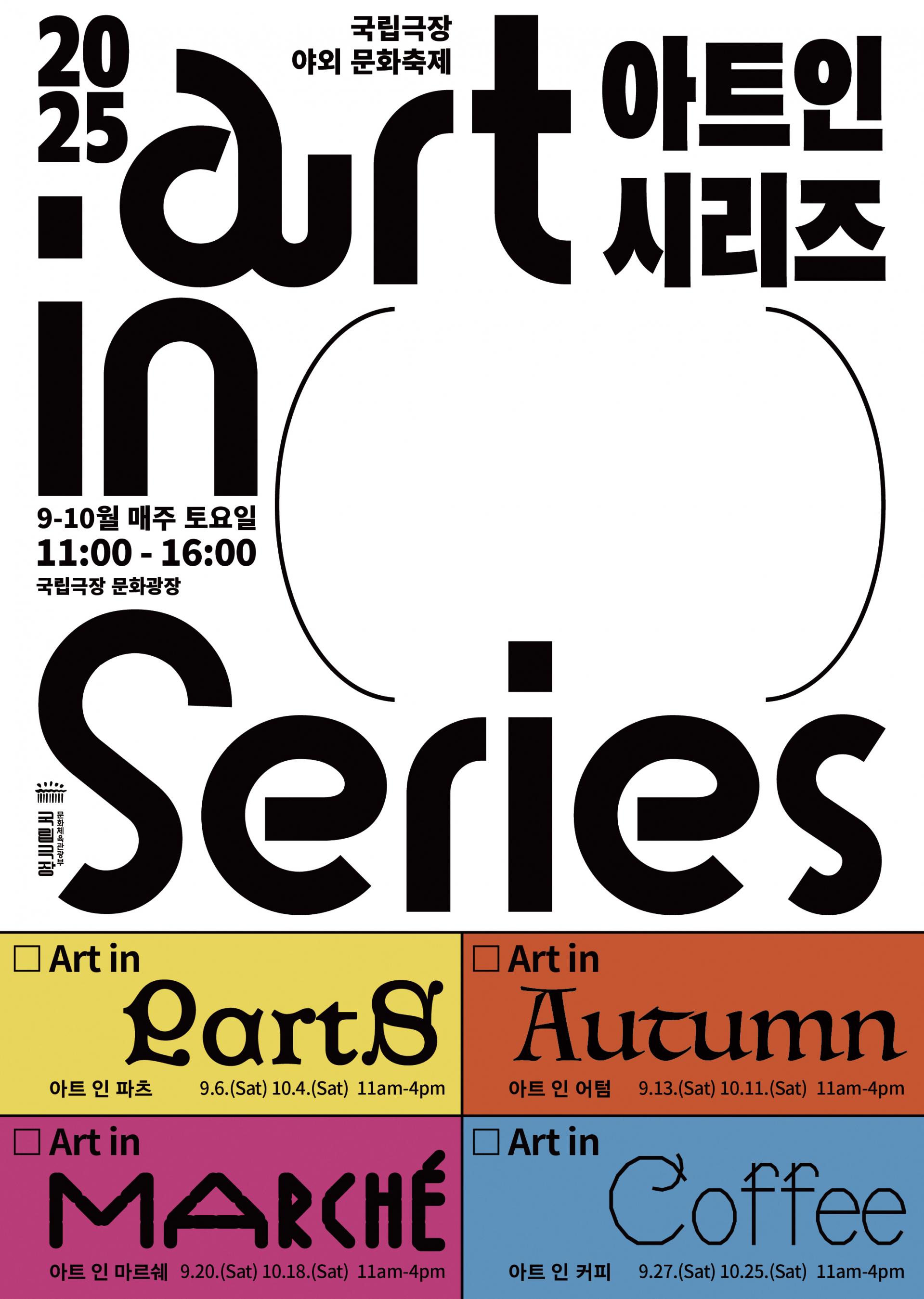 서울 남산 국립극장 문화광장이 가을의 향기로 물든다. 오는 10월까지 매주 토요일, 국립극장의 대표 야외 축제인 아트 인 시리즈가 다시 문을 연다. 2021년 아트 인 마르쉐로 시작한 이 축제는 누구나 자유롭게 찾을 수 있는 생활 속 예술 장터를 모티브로 삼아, 지금까지 십만 명이 넘는 관객이 다녀간 인기 프로그램으로 자리매김했다.