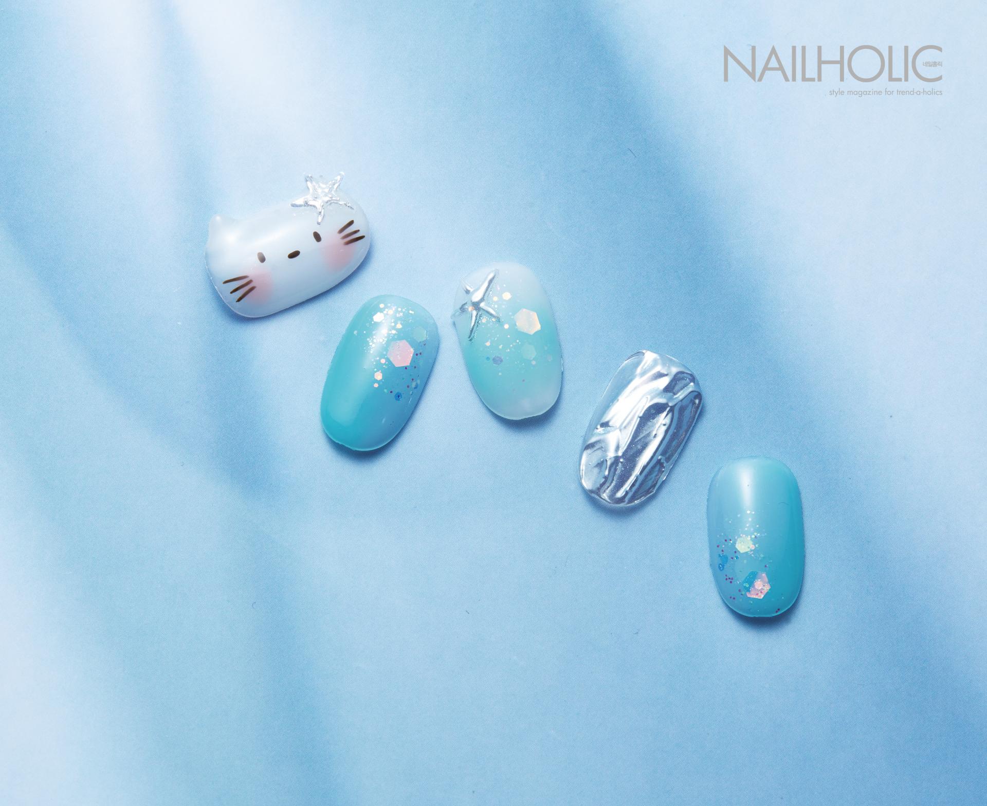 헬로키티 캐릭터를 가로로 연출한 젤 아트를 디자인해보자.