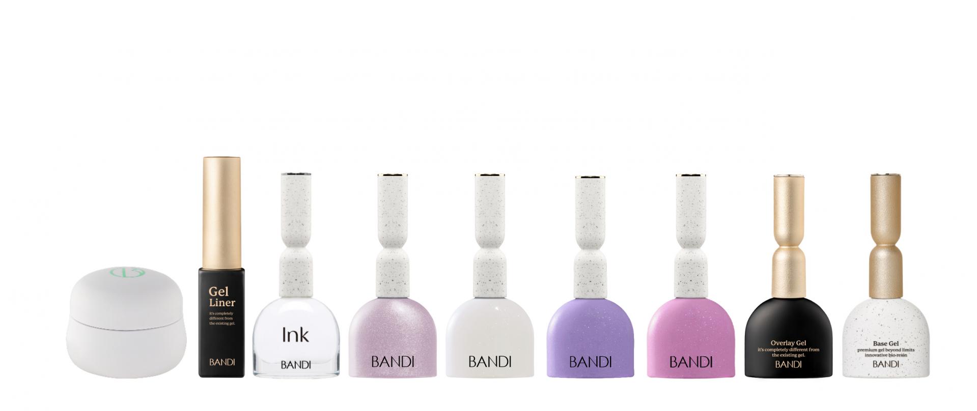 반디 우드 파일, 반디 바이오 레진 베이스 젤, 반디 오버레이 젤, 반디 컬러 젤(BP161m, BP343m, BP383m, BP808, BP813),반디 젤 라이너, 반디 화이트 잉크, 반디 오로라 파우더(2호), 스펀지 팁, 반디 젤 클렌저, 마그넷, 반디 미니맥스 젤 램프